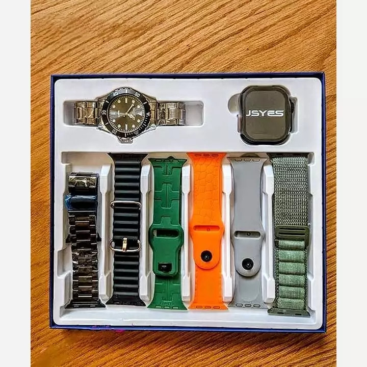 پک هدیه ساعت هوشمند JSYES M74 Max اصلی به همراه یک ساعت انالوگ زیبا