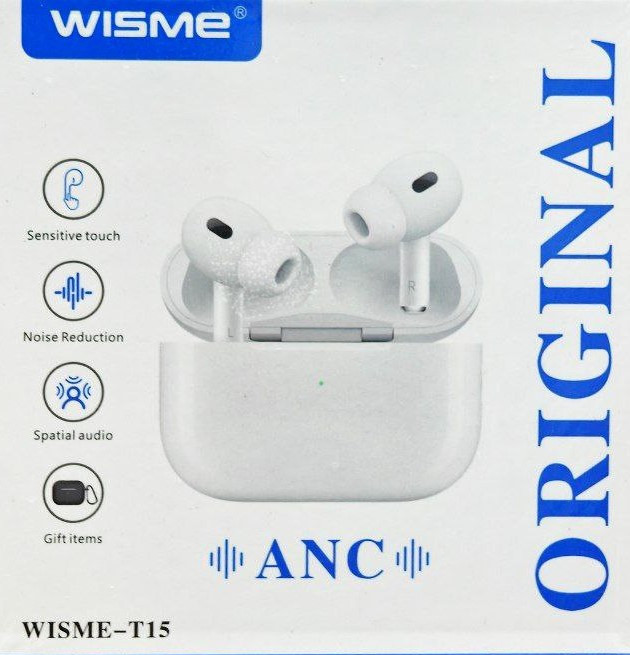 🎧 ایرپاد بلوتوثی WISME مدل T15؛ طراحی مدرن، صدای شفاف و اتصال سریع!