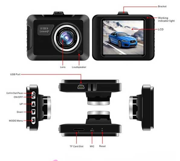 فرمت فیلم ضبط شده توسط این دوربین خودرو AVI بوده و دارای خروجی Micro USB می باشد.